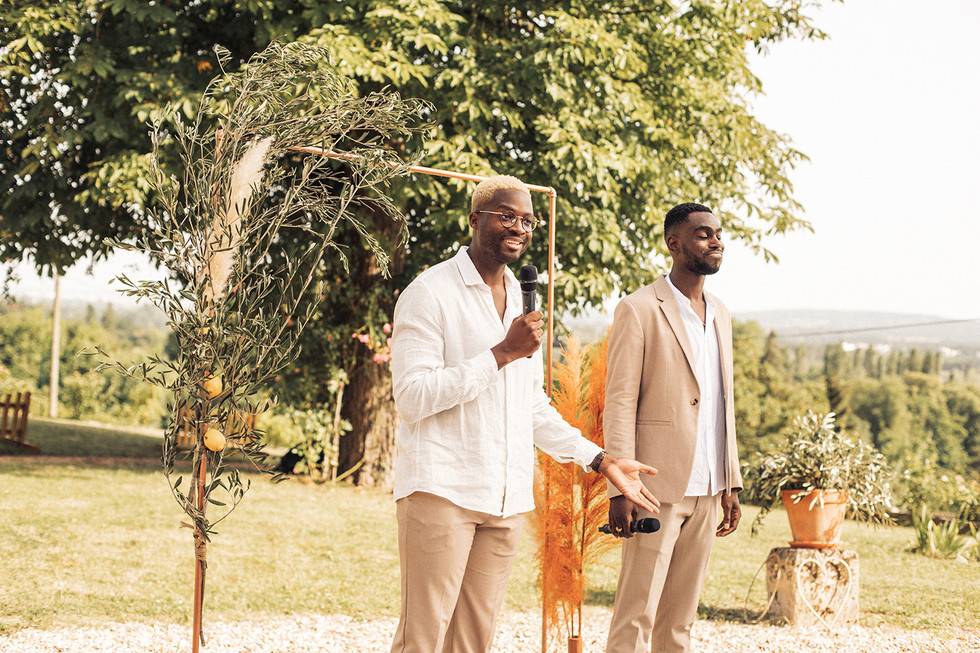 Une cérémonie laïque officiée avec brio par leurs ami.es. Ils n'avaient pas une note et tout était dit avec adresse, humour et douceur. De vrais orateurs.