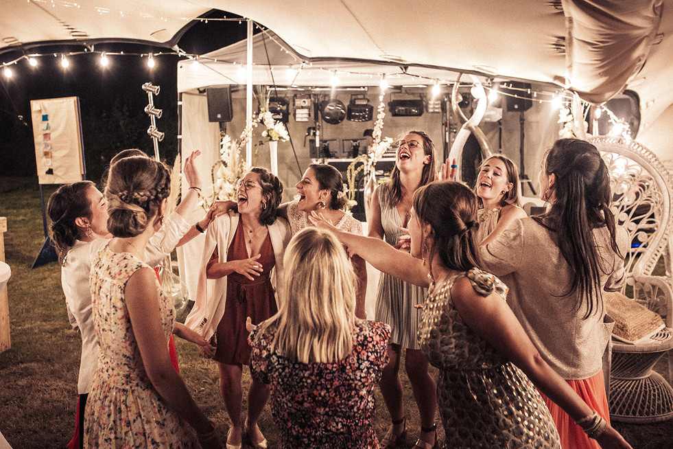 Ils avaient donné rendez-vous à tout le monde à Cholet le samedi. Un terrain privé ou se déroulerait cérémonie laïque et fête jusqu'au bout de la nuit. Un parking - camping était organisé, tout était pensé pour qu'une fois arrivés sur place, les invités n'aient plus qu'à profiter. Groupe de musique pendant le cocktail, soleil, et bande de copains du lycée, l'ambiance est au rendez-vous des le début de la journée.